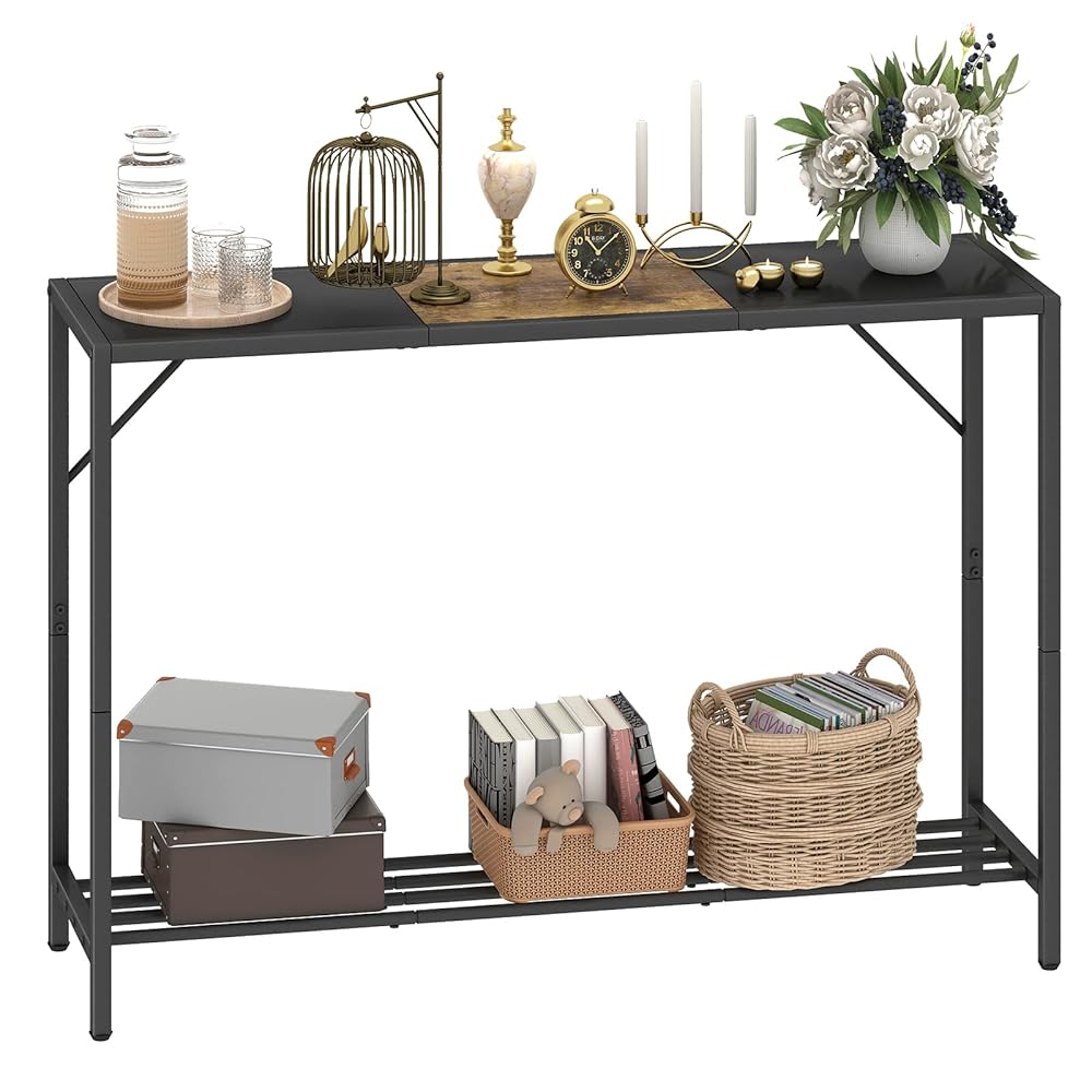 LAATOOREE Console Table, 41.7″ Industrial Entryway Table with Shelf, Narrow Sofa Table for Hallway, Entrance Hall, Foyer, Corridor, Living Room – Wood Look Metal Frame