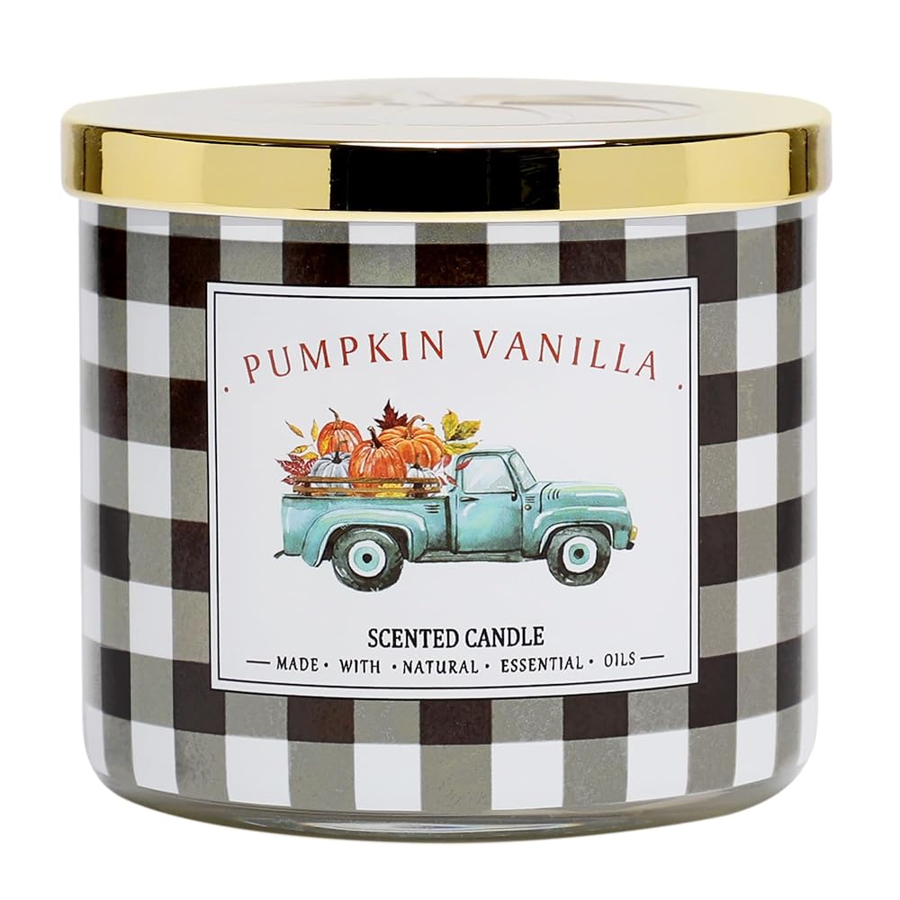 Pumpkin Candle Fall Candle Pumpkin Vanilla Secented Candle Autumn 3 Wicks Large Candle 14 oz