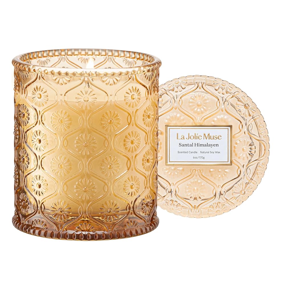 LA JOLIE MUSE Sandalwood & Patchouli Scented Candle, Candles for Home Scented, 8 oz 50 Hours Burn, Candles Gift for Women & Men