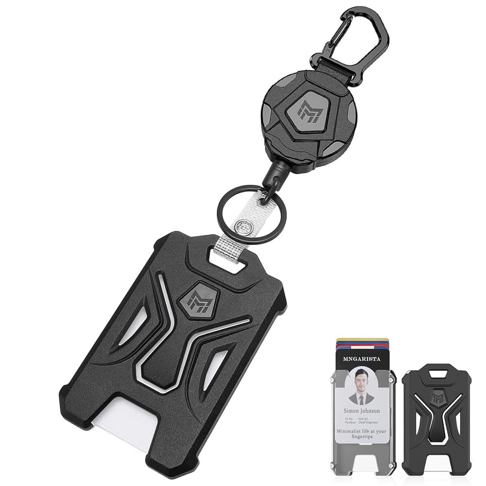 MNGARISTA Retractable Keychain, Heavy Duty Carabiner Badge Holder, Tactical ID Badge Reel with 31.5” Steel Retractable Cord, 8.0 oz