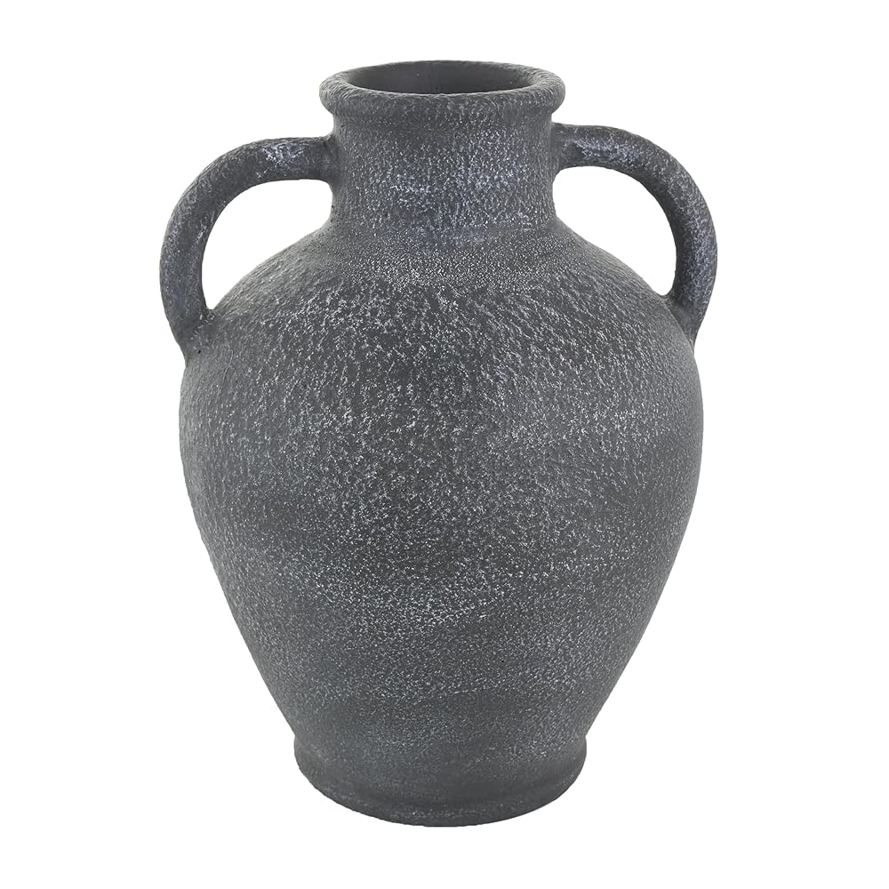 Deco 79 Ceramic Whitewashed Textured Amphora Vase with 2 Handles, 11″ x 11″ x 16″, Black