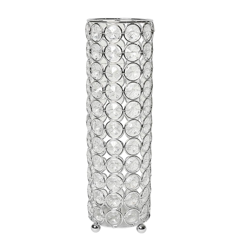 Elegant Designs HG1011-CHR Elipse Crystal Decorative Flower Vase, Candle Holder, Wedding Centerpiece, 10.25 Inch, Chrome
