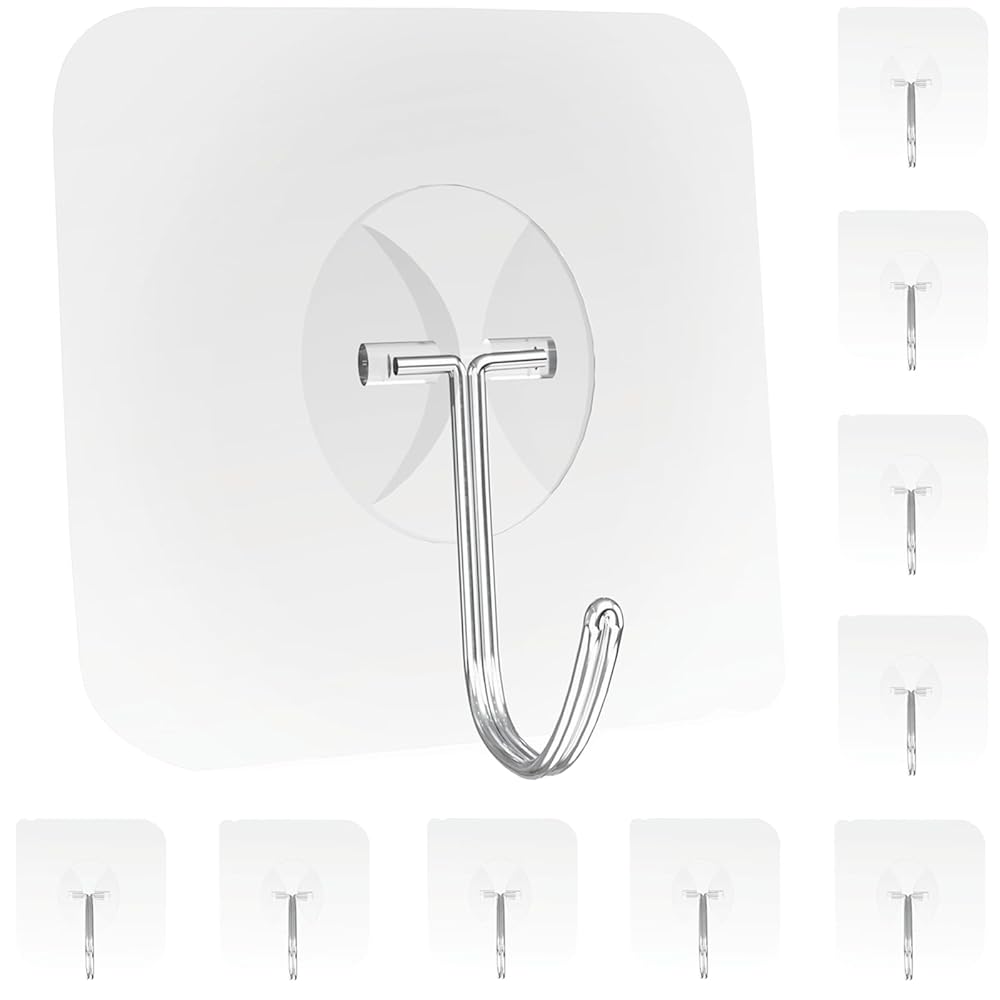 Latoxcaa Heavy Duty Adhesive Wall Hooks – Strong & Transparent, Hold up to 22lb, Waterproof & Reusable, Ideal for Kitchen, Bathroom, and Office (10 Pack)