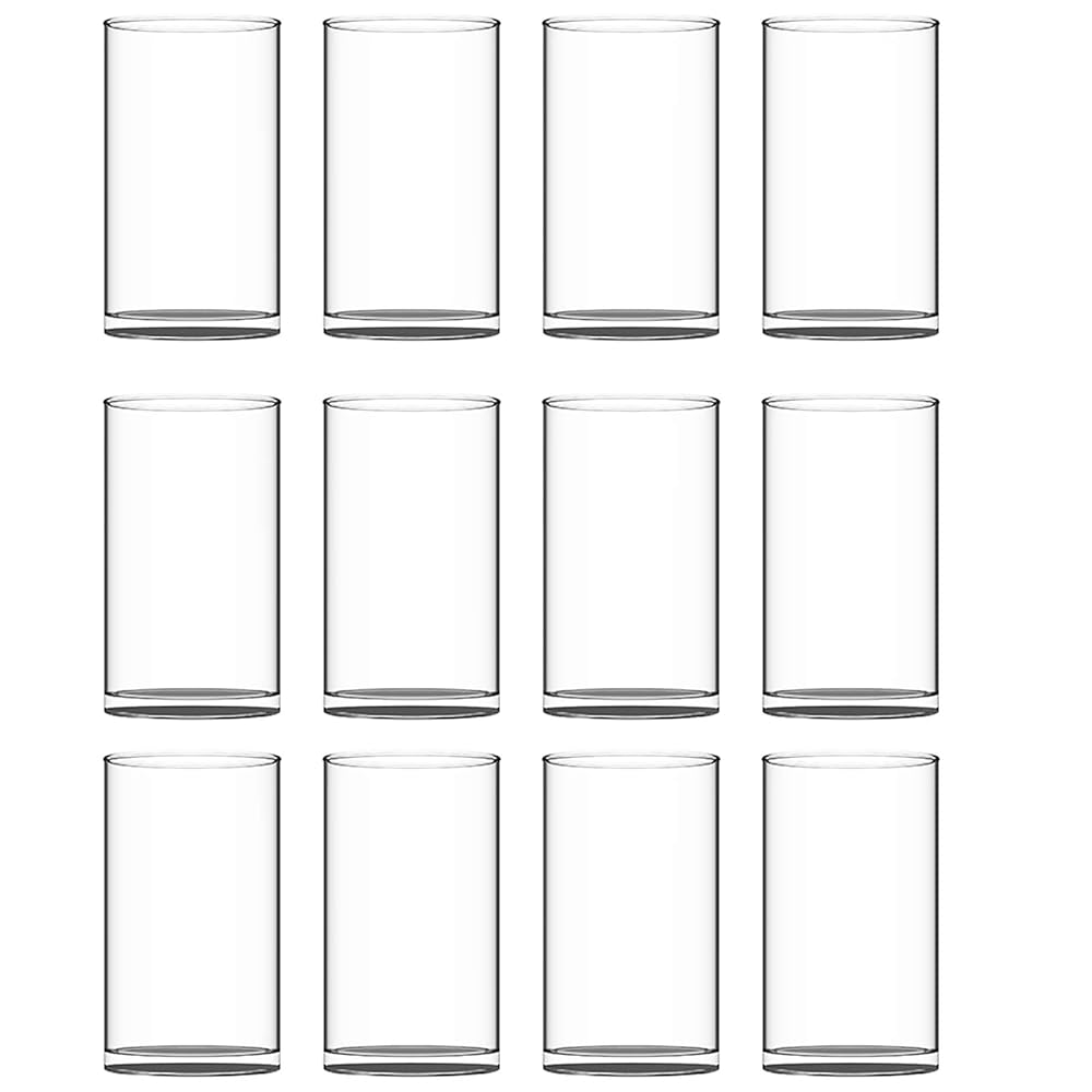 Glasseam Cylinder Vases Set of 12, Hurricane Candle Holder Clear Different Sizes, Modern Glass Cylinder Vase, Glass Vases for Centerpieces for Home Decor Wedding Centerpieces,…