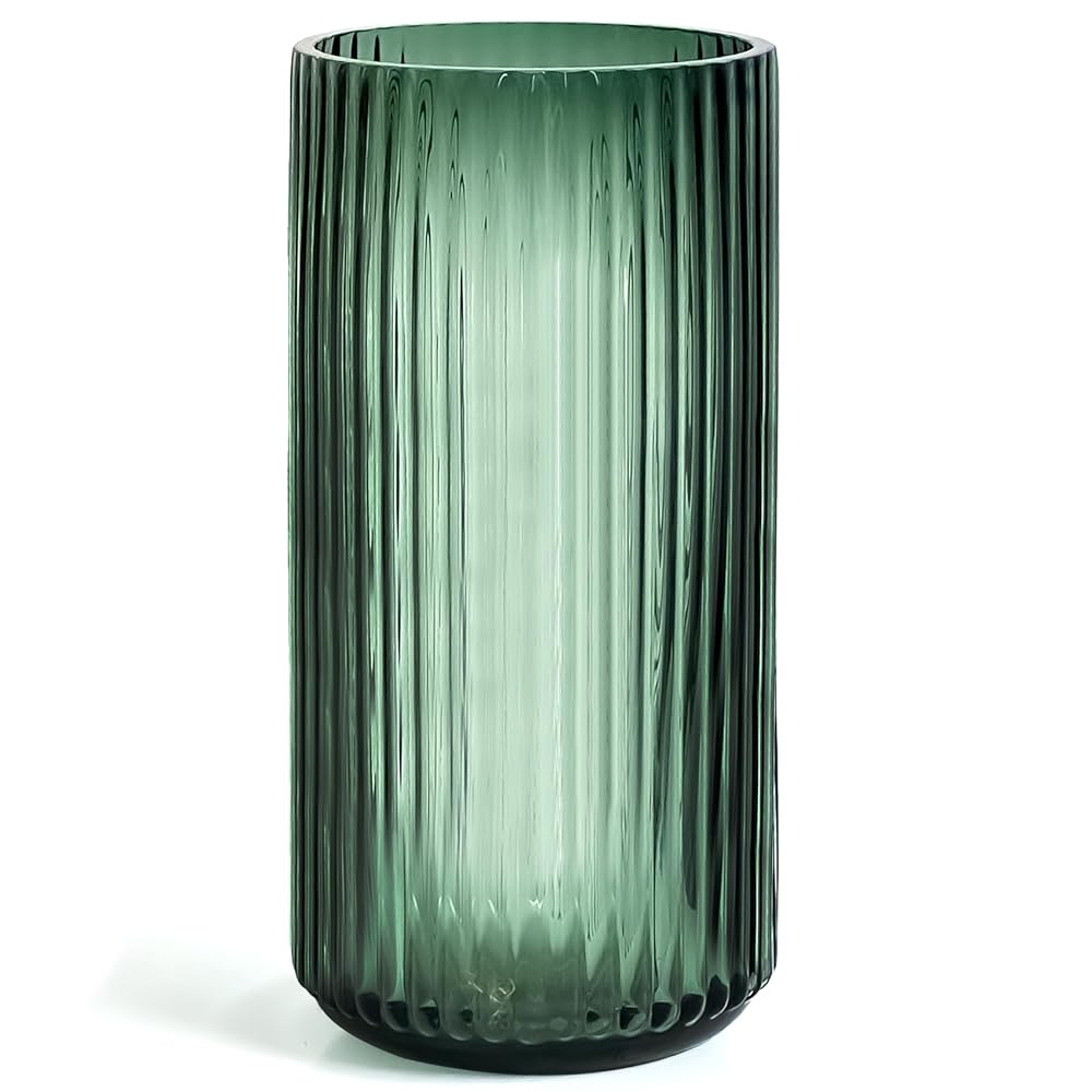 Muyan 7.5″ Flower Vase for Decor Ribbed Glass Vase Modern for Centerpieces Desktop Home Office Dining Living Room Wedding (Green)