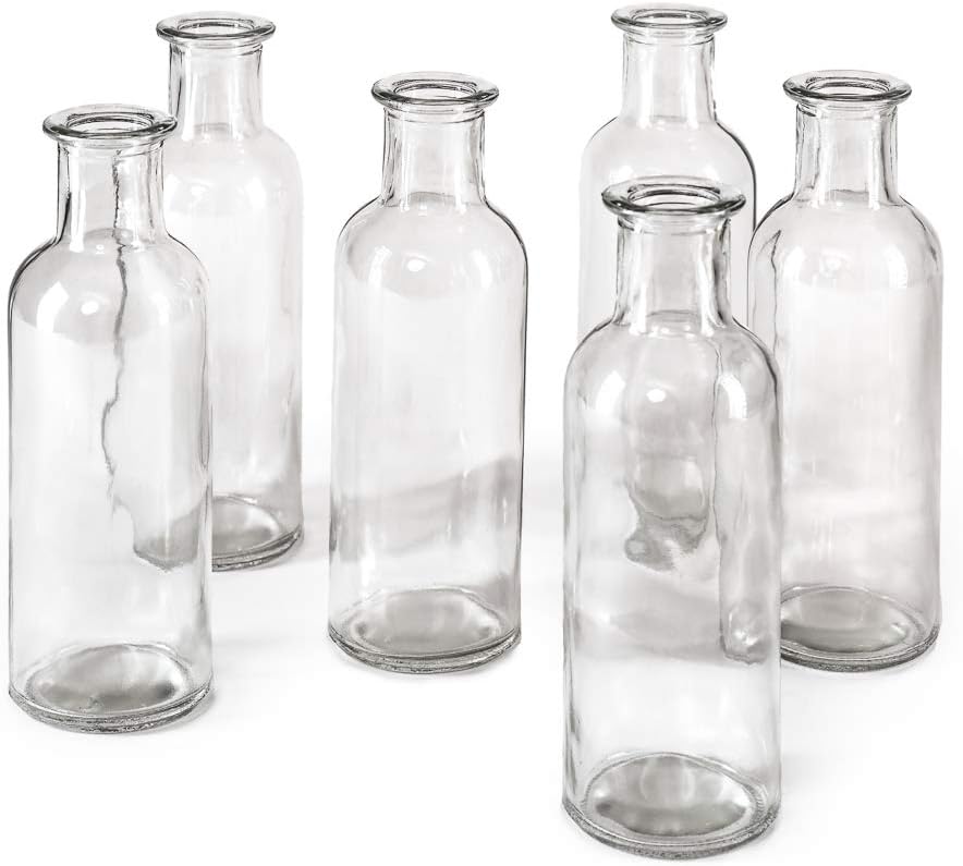 Serene Spaces Living Set of 6 Large Clear Bud Vases, Apothecary Jars, Decorative Glass Bottles, Centerpiece for Wedding Reception, Antique Decoration, Flower Vases, Measures…