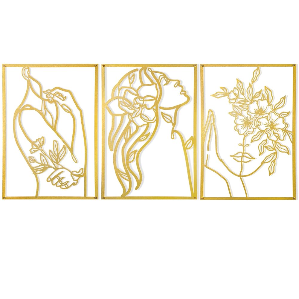 AGIOTA 3 Pcs Gold Wall Decor Above Bed Minimalist for Living Room Metal Line Art – Female Body, Gold Room Decor for Bedroom Modern Wall Art for Indoor 15inch