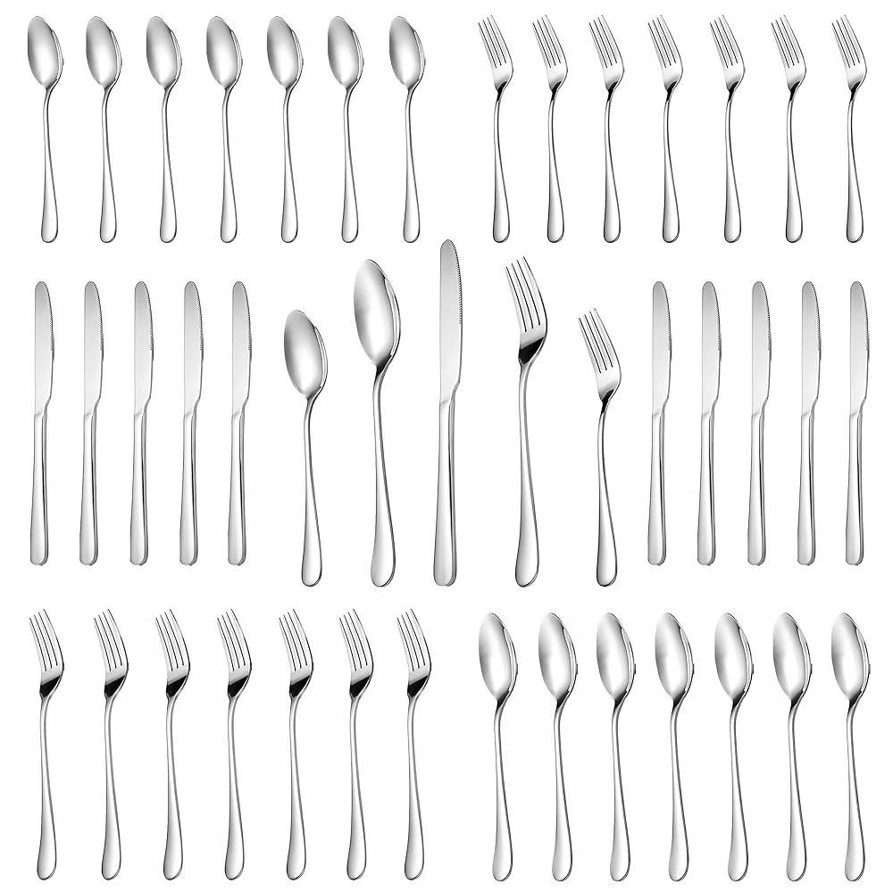 45-Piece Silverware Flatware Cutlery Set Service for 8, Durable 18/0 Stainless Steel Tableware in Ergonomic Design Size and Weight, Dishwasher Safe