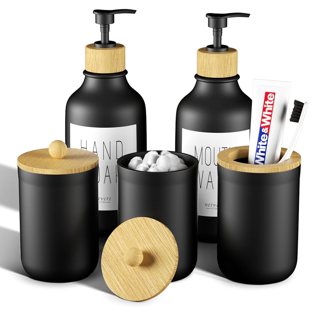 The set looks nice. However, the soap dispenser leaks from the bottom of the bottle. I don’t know how, but once it’s filled with soap, the tray gets full of the soap. It’s a waste and makes a mess.